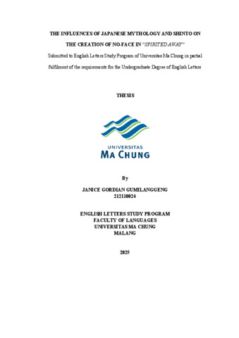 JANICE GORDIAN, GUMILANGGENG THE INFLUENCES OF JAPANESE MYTHOLOGY AND SHINTO ON THE CREATION OF NO-FACE IN “SPIRITED AWAY”. [TA] (Unpublished)