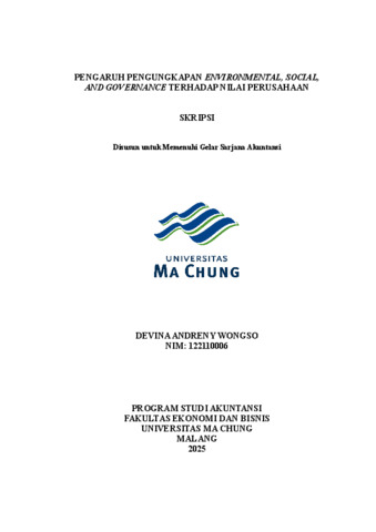 DEVINA ANDRENY, WONGSO PENGARUH PENGUNGKAPAN ENVIRONMENTAL, SOCIAL, AND GOVERNANCE TERHADAP NILAI PERUSAHAAN. [TA] (Unpublished)