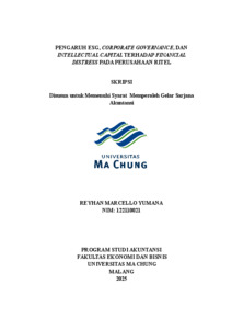 REYHAN MARCELLO, YUMANA PENGARUH ESG, CORPORATE GOVERNANCE, DAN INTELLECTUAL CAPITAL TERHADAP FINANCIAL DISTRESS PADA PERUSAHAAN RITEL. [TA] (Unpublished)