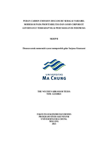 THE WECHEN ABRAHAM, TEDJA PERAN CARBON EMISSION DISCLOSURE SEBAGAI VARIABEL MODERASI PADA PROFITABILITAS DAN GOOD CORPORATE GOVERNANCE TERHADAP NILAI PERUSAHAAN DI INDONESIA. [TA] (Unpublished)
