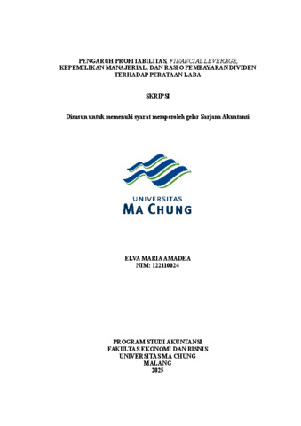 ELVA MARIA, AMADEA PENGARUH PROFITABILITAS, FINANCIAL LEVERAGE, KEPEMILIKAN MANAJERIAL, DAN RASIO PEMBAYARAN DIVIDEN TERHADAP PERATAAN LABA. [TA] (Unpublished)