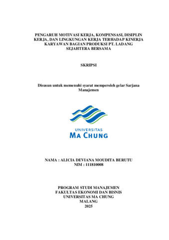 ALICIA DEVIANA MOUDITA, BERUTU PENGARUH MOTIVASI KERJA, KOMPENSASI, DISIPLIN KERJA, DAN LINGKUNGAN KERJA TERHADAP KINERJA KARYAWAN BAGIAN PRODUKSI PT. LADANG SEJAHTERA BERSAMA. [TA] (Unpublished)