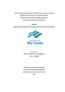 REZA INGENTENTA, SEMBIRING PENGARUH CUSTOMER RELATIONSHIP MANAGEMENT (CRM) TERHADAP LOYALITAS NASABAH DENGAN KEPUASAN SEBAGAI VARIABEL MEDIASI PADA BRI CABANG GALUNGGUNG. [TA] (Unpublished)