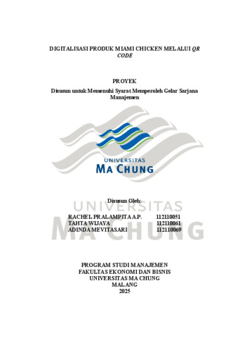 Rachel Pralampita Asmara, Patma and TAHTA, WIJAYA and ADINDA, MEVITASARI DIGITALISASI PRODUK MIAMI CHICKEN MELALUI QR CODE. [TA] (Unpublished)