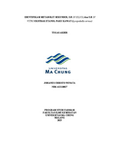 JOHANES CHRISTO, WINATA IDENTIFIKASI METABOLIT SEKUNDER, UJI IN SILICO, dan UJI IN VITRO EKSTRAK ETANOL PAKU KAWAT (Lycopodiella cernua). [TA] (Unpublished)