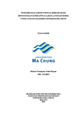 Wijanto, Michael Christopher Otniel (2026) PENGEMBANGAN ASISTEN VIRTUAL BERBASIS SUARA MENGGUNAKAN GENERATIVE AI LARGE LANGUAGE MODEL UNTUK LAYANAN AKADEMIK UNIVERSITAS MA CHUNG. Tugas Akhir/Skripsi thesis, Universitas Ma Chung.