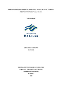 Hartono, Gregorio (2024) IMPLEMENTASI LSTM BERBASIS WEB UNTUK SEXING BURUNG ENDEMIK INDONESIA MENGGUNAKAN SUARA. Tugas Akhir/Skripsi thesis, Universitas Ma Chung.