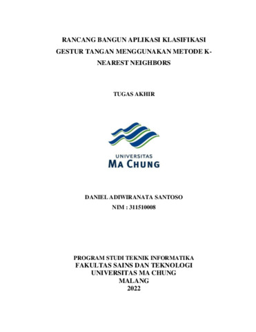 SANTOSO, DANIEL ADIWIRANATA (2022) RANCANG BANGUN APLIKASI KLASIFIKASI GESTUR TANGAN MENGGUNAKAN METODE K�NEAREST NEIGHBORS. Tugas Akhir/Skripsi thesis, Universitas Ma Chung.