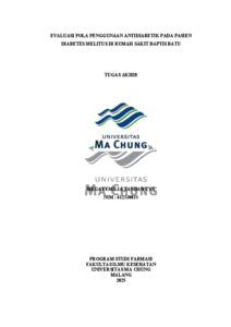 TANDAWUYA, MEGA FEMILIA EVALUASI POLA PENGGUNAAN ANTIDIABETIK PADA PASIEN DIABETES MELITUS DI RUMAH SAKIT BAPTIS BATU. [TA] (Unpublished)