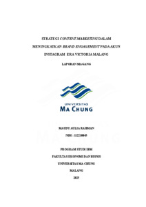 MAUDY AULIA, RAHMAN STRATEGI CONTENT MARKETING DALAM MENINGKATKAN BRAND ENGAGEMENT PADA AKUN INSTAGRAM ERA VICTORIA MALANG. [PKL] (Submitted)
