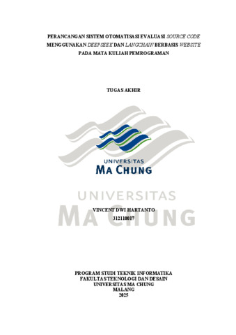 VINCENT DWI, HARTANTO PERANCANGAN SISTEM OTOMATISASI EVALUASI SOURCE CODE MENGGUNAKAN DEEPSEEK DAN LANGCHAIN BERBASIS WEBSITE PADA MATA KULIAH PEMROGRAMAN. [TA] (Submitted)