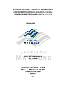 DENNY AGUNG, SITUMEANG RANCANG BANGUN APLIKASI GROUPWARE SURAT MENYURAT BERBASIS WEB UNTUK MENDUKUNG ADMINISTRASI DIGITAL INSTANSI GPdI SEJAHTERA MOJOREJO KAJANG KOTA BATU. [TA] (Submitted)