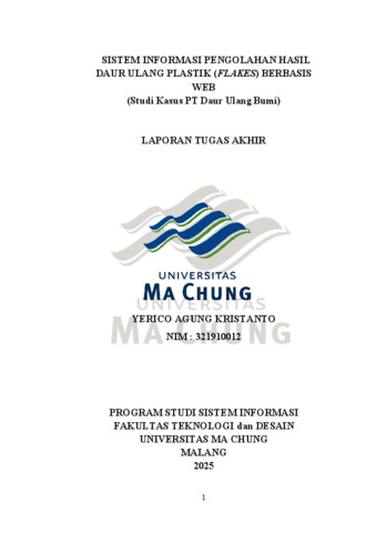 YERICO AGUNG, KRISTANTO SISTEM INFORMASI PENGOLAHAN HASIL DAUR ULANG PLASTIK (FLAKES) BERBASIS WEB (Studi Kasus PT Daur Ulang Bumi). [TA] (Submitted)