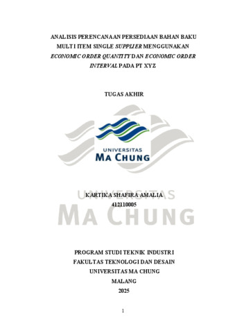 KARTIKA SHAFIRA, AMALIA ANALISIS PERENCANAAN PERSEDIAAN BAHAN BAKU MULTI ITEM SINGLE SUPPLIER MENGGUNAKAN ECONOMIC ORDER QUANTITY DAN ECONOMIC ORDER INTERVAL PADA PT XYZ. [TA] (Submitted)