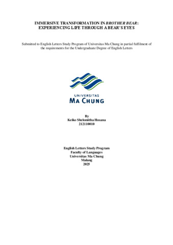 Keiko Shelomitha, Hosana IMMERSIVE TRANSFORMATION IN BROTHER BEAR: EXPERIENCING LIFE THROUGH A BEAR’S EYES. [TA] (Unpublished)