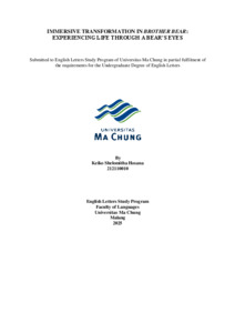 This study analyzes the film Brother Bear (2003), a Disney animated movie that follows the story of Kenai, an adolescent who desperately wants to become a man, and his transformative journey after being turned into a bear. The focus of this study is on Kenai’s characterization and character development. The objectives are to explore: (1) why Kenai transforms into a bear, (2) how the transformation changes his previous beliefs and perspectives, and (3) how the film portrays the relationship between humans and animals. This research uses a descriptive qualitative methodology, examining key scenes and dialogue from the film. To support the analysis, the writer applies several relevant theories, including characterization theory, miseen-scène theory, empathy theory, immersive transformation theory, the five stages of grief theory, violence theory, and human-animal bond theory. The findings reveal that Kenai transforms into a bear after experiencing the first two stages of grief, denial and anger, following the death of his brother and kills the bear that he thought responsible. His actions are driven by a desire for revenge and to restore social order, aligning with theories of violence. Initially, Kenai is portrayed as an immature and arrogant adolescent who views bears as emotionless and violent creatures. However, through his immersive transformation, his perspective shifts, and his empathy deepens. As a result, he matures into a responsible and compassionate individual. The film presents the human-animal relationship as one of spiritual and emotional equality, reflecting mutual respect. However, it also acknowledges moments of fear and conflict between the two groups. This tension is ultimately minimized by the end of the film, as Kenai and Koda, despite being bears, are accepted into the human tribe, symbolizing reconciliation and the possibility of harmonious coexistence.